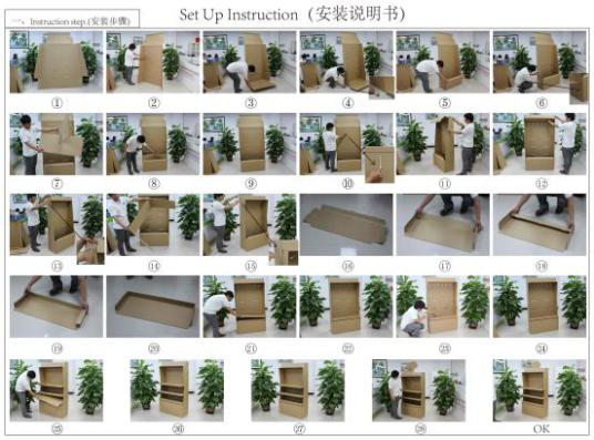 紙貨架的組裝對于未接觸過這方面的客戶來說估計還真是一個難題,看似很繁瑣的事其實很簡單,只要你按照說明書來安裝幾步就能搞定。