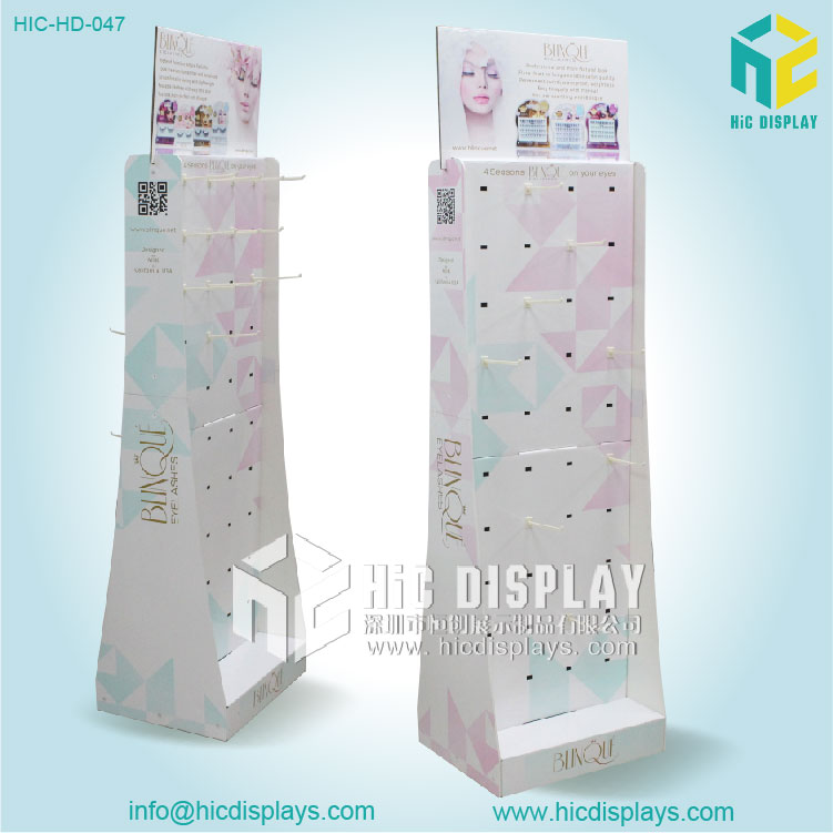 通常紙展示架分為常用的幾種類型,落地式展示架、掛鉤式展示架等。還有比較特殊的紙堆頭,PDQ等。以上幾種都是比較常用的類型,各有千秋。