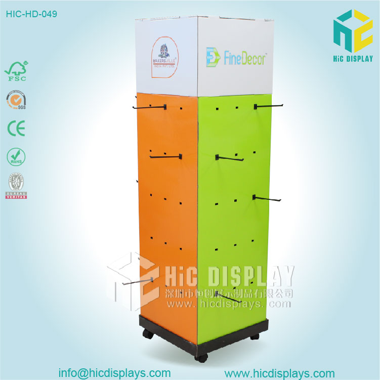 比雙面更加豪華的是四面掛鉤展示架,這可謂是終極版了。底部設計配著輪子方便展示架的移動與轉動。雙面所具有的優點它都有,而且它比雙面掛鉤展示架更加的靈活。簡直是行走的販賣機。