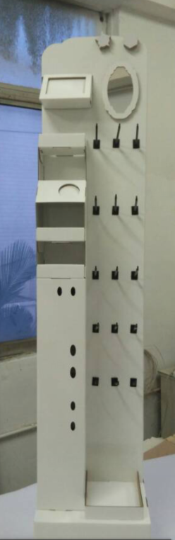 以下是10月底出貨的一款化妝品展架,先設計好效果圖,我們做白樣給客戶,測試產品放上去的效果。