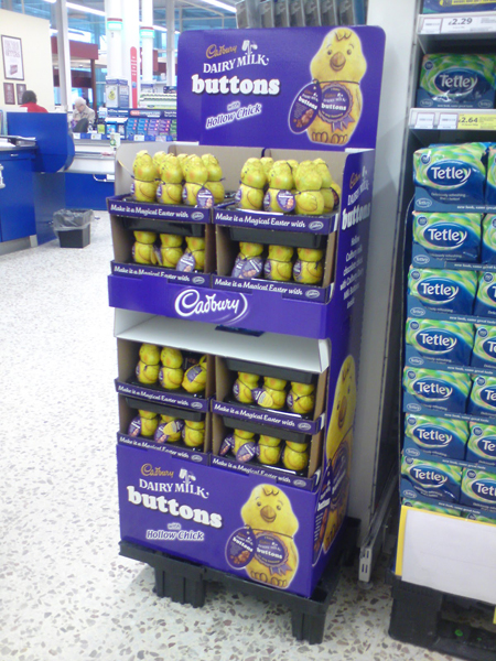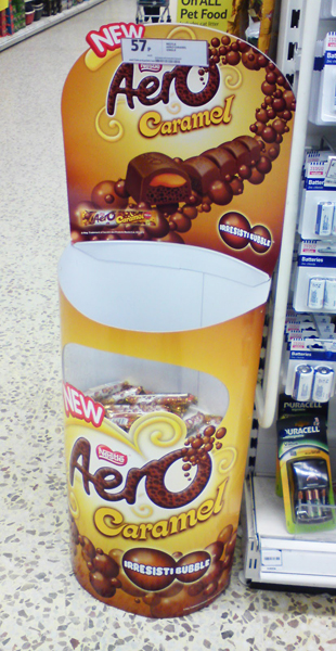 超市促銷物品造型很別致,輪胎造型的薯片在這里展示了出來,節日氣氛及色彩在這里組合搭配,吸引著顧客的眼球,同時這也是一種很好的促銷手段,值得借鑒。