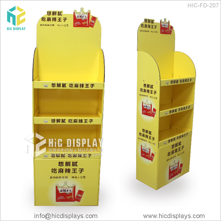 恒創展示專門為麻辣王子打造了一款精美的紙貨架,希望通過這款紙貨架讓更多人認識麻辣王子這款美味的食品。