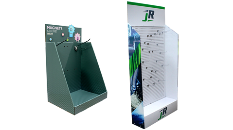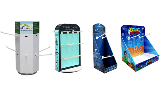適用于磁鐵、五金工具等產(chǎn)品展示。鐵掛鉤展示架比較適合掛沉重的物體。可見紙展架能靈活運用金屬配件來滿足產(chǎn)品承重需求。不管是大的展示架還是小的PDQ展示盒,都能根據(jù)產(chǎn)品特點來體現(xiàn)效果。